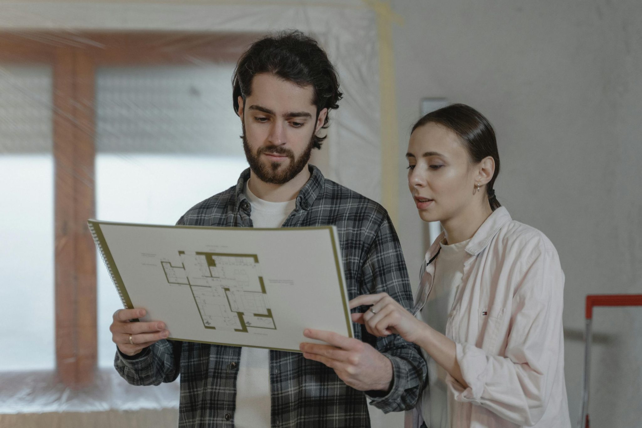 a-man-and-woman-examining-a-floor-plan-for-home-improvement-indoors-6474498-s...